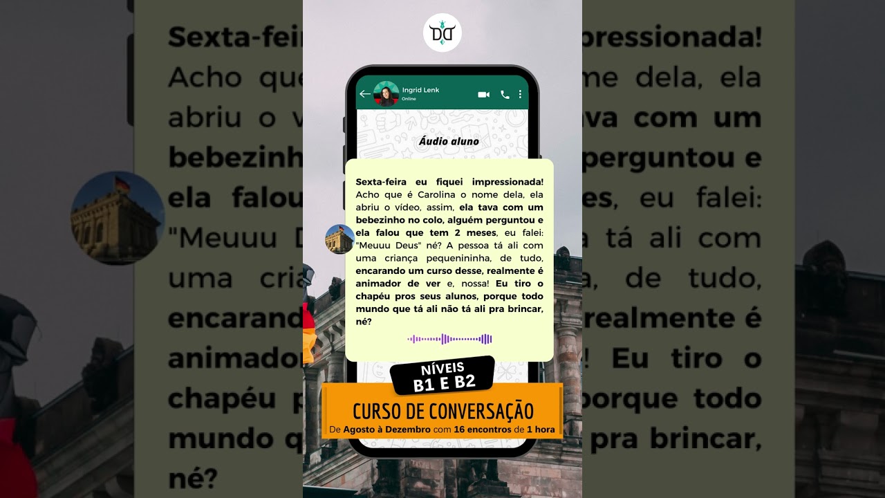 FALAR alemão é seu maior desafio? Então você está no curso certo! Criamos este curso para resolver este problema e ajudar aos alunos a destravarem o alemão que existe dentro de vocês! Aulas pelo Zoom com data e hora marcada. Verifique aqui a disponibilidade!
